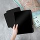 若您的iPad是满版保护贴,安装底壳硅胶(附笔槽)的保护殻时可将壳往外扳,将保护贴挤进去,以免保护贴受挤压。