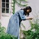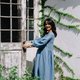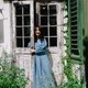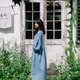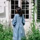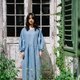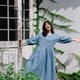 Linen Round neck puffy sleeve dress in Dusty Blue