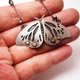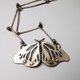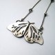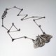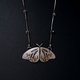 - • 材质:925银 • 飞蛾尺寸:2.6 x 4.7 cm • 项链长度(不含坠子) : 18寸 • 表面处理:硫化银刷雾 • 技法:手工焊接与建构,全程手工制作