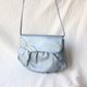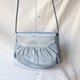 /库存新品/日本珠光银蓝色蝴蝶羊皮古董包 日本昭和时期品牌 特殊珠光 冷色调银蓝 柔软羊皮 皮革柔软润泽 蝴蝶(结)装饰 五金光亮 辫式背带 长度长 可以自行绑结缩短 吸磁开扣开阖顺畅 可爱花纹内里 干净完好 单层和一拉链口袋 手机 短夹等小物可放入 背面也有一个夹层 整体保存良好 难得的未使用品 日本制
