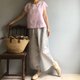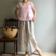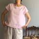 小花瓣/清新粉红色亚麻法式袖小上衣100%亚麻