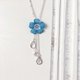 < 手绘粉蓝色粉蝶花闪烁流星水滴水晶颈链 项錬 >