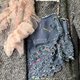 - OTT独一无二•Unique日系浪漫风粉色layser牛仔洗水粒粒绒长褛