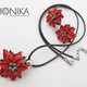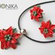 "Poinsettia"- earrings, pendant with red flowers made of polymer clay.