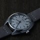 King Seiko 中比较常见的是像7000那般以锐利棱角为特色的壳型,这颗7010则是反其道而行,以柔和的曲线代替锐利的切线,再搭配少见的丝状直纹面盘,和壳型相互辉映呈现出和式的典雅美感。