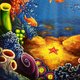 原始油画海底世界。90厘米x50厘米。 尺寸拉伸在画布上