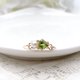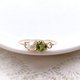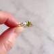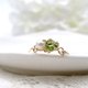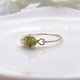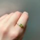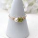 这是一枚由橄榄石和淡水珍珠制成的爪镶式金属戒指。