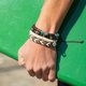 来自岛屿的灵感,一组四条手工编织的男士手链,以自然皮革与椰子木交织出阳光洒落后的质朴温度。