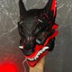 半黑半红赛博风狐狸面具采用高强度、低致敏树脂手工制作,并使用丙烯颜料手绘,表面覆以哑光环氧涂层。这款赛博朋克狐狸面具内侧配有柔软内衬,佩戴舒适,并搭配加宽头带和弹性绑带,贴合稳固。