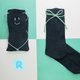 ▲Smile Socks/手工绑上一条跳色的麂皮绳,穿梭在袜子的织纹之间,勾勒出一个笑脸/此款穿上后可将绑绳绕到后面打上蝴蝶结