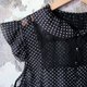 - Vintage 黑色水玉布花拼接蕾丝洋装 复古着