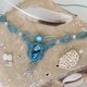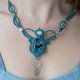 “天体之梦”编织项链,以令人惊艳的蓝色编织工艺,结合拉长石与彩虹月光石,精心制作成精美的捕梦网吊坠,并点缀上细致的银珠。