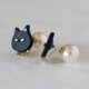 这些耳环和无孔耳环正面有一只猫,背面有珍珠。