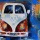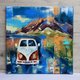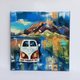 Title: "Retro car " VW bus artwwork. Mountains wall art.
