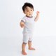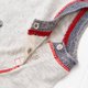 A half-sleeve romper with the motif of a hand-knitted yacht.