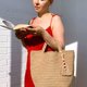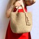 Large jute bag with short handles. Handmade crocheted shopper bag from 100% natural undyed jute. Handy bag for shopping, travel, opportunity or picnic.