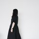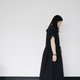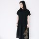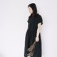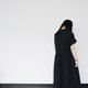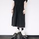 - 圆领的黑色连身裙 腰部有绳子可索紧 背后有半钮扣