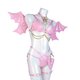 漆皮内衣上衣与丁字裤,搭配缎面弹性绑带细节。弹性束身带附可拆式翅膀,丁字裤则配有吊袜带与链条尾饰。