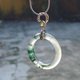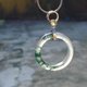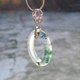 通透中见碧绿水草的水草玛瑙带萤光,是团队精挑的石材人手切割而成的小环。配上的是925s民族扣设计,镶嵌了金绿宝石。不同光度也不同色的但也是可爱的通透碧绿,优雅自然的花纹。