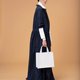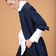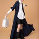 合肩深蓝拉链洋装,可当风衣外套也可当洋装穿搭,小立领延伸前片口袋到腰部抽绳织带,下摆也有工装感口袋设计“园丁”的元素,优雅之中又有点中性帅气,是本季非常时髦且轻质的款式之一。