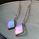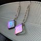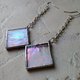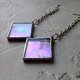 Iridescent stained glass earrings with square shape (made of glass, copper/tin). Tiffany technique.
