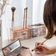 - 适合眼妆刷具的玫瑰金系列组合:12格刷具架+迷你小抽屉——成为妳桌上的美妆小公寓。