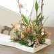 作品里的树枝上覆盖着自然干燥的苔藓和蕨叶枯枝为主题,带出冬天的寒风凛冽与下方各类花草颜色做出强烈对比,带点暖色调的橘色满天星,象征着点燃你我心中的光芒!