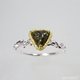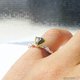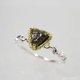将天然钻石原石镶嵌于金银拼接设计的戒指上。