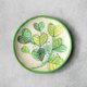 这是一只带有水彩画或素描般淡雅图案的盘子。