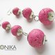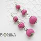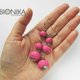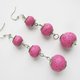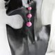 Long dangling track earrings, fuchsia bead earrings.