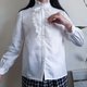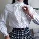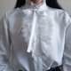 复古白色荷叶边衬衫,领口饰有褶裥,高领荷叶边衬衫配蝴蝶结,浪漫白色衬衫