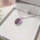 有别于一般紫水晶的娇艳茄紫,这款带一点点粉色的薰衣草紫,充满浪漫恬静的气息,是市面上少见的紫水晶色泽。天然宝石,产地巴西。 10*14 mm宝石,整体清透明亮,镶在银白色的简单滚珠坠台上,温柔可人。 搭配意大利进口18寸纯银链。