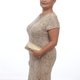 女用米色亮片手工针织黏胶棉鸡尾酒礼服