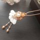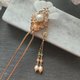 天然贝壳+淡水珍珠+玛瑙+橘兔毛+粉晶+钻切白水晶+保色铜发叉+保色铜配件
