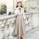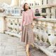 - 棕色系的格纹元素,就像秋季画卷般的配色,非常应景。搭配上粉色系毛衣,粉嫩减龄又很有英伦范。