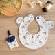 * 婴儿围兜、用品等材质柔软,请勿用力搓揉、拉扯扣子、绑绳以避免损坏