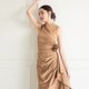 这款派对洋装绝对是您的吸睛逸品,穿上身即刻展现独特品味。设计简约却显得奢华,腰间的抓皱巧思能修饰腹部线条,侧边的荷叶边增添了修长感,而同色系的精致花朵胸针则为整体造型注入一抹甜美。这件绝对是衣柜里不可或缺的单品!🥰