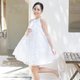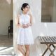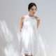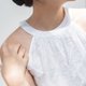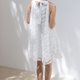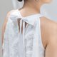 领高可由绕颈的绑带松紧做调整;胸围较大可能造成洋装些微前短后长的视觉效果,可将绑带调松并将领口拉低一些,则裙底调整为平行高度。