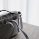 ● 细节:铺棉制作、同色麂皮制提把,外加内的开放式口袋、拉链式口袋。