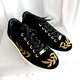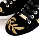 **JIMMY CHOO黑色丝绒金色丝线刺绣羽毛图案平底鞋散步鞋休闲鞋球鞋**