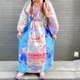 这是一款使用复古布料拼接而成的特别款连身洋装。