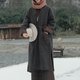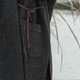 黑巧花棕色的圈圈羊毛長袍,以92%羊毛的扎實質感織就冬日的溫暖敘事。寬鬆V領設計與腰間系帶勾勒慵懶輪廓,前門襟與袖口拼接全棉提花面料,如同為袍子鑲上復古花邊。側邊開叉隨步履輕揚,毛邊下擺保留面料原生質感,領邊捷克珠與植物染棉線手工刺繡閃爍細膩光澤,口袋處的天然石點綴則暗藏自然趣味。提花拼接與袍身色彩形成大地色系漸變。每處細節都在訴說手作的溫度與自然之美。
