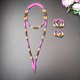 粉红本土风格串珠首饰套装,包括挂绳、圈形耳环和颈链