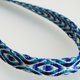 在中南美旅行时深深被织品工艺吸引因而开始学习织带创作,以传统织布原理技法织成,一个小单一图形利用织法变化就能在一长条织带上连续产生几种型态,古老工艺千变万化,图案皆为本人亲自设计制作。