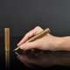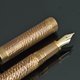 此款以黄铜为基础,手工一锤一锤敲打出不同的独特纹路,中环加上不同的精密花纹,握位及上下环相互呼应,再以做旧的技术刻意制造出沧桑复古的效果,随着时间的氧化,更增加刻纹的立体感,握在手中有无比厚实的感觉,是一支真正可以用一辈子的万年笔。