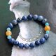 - daisy很喜欢这种颜色的蓝线石,蓝的有层次,部分珠子有黄斑。 整体看上去有油画般的鲜艳色彩感。 台湾很少见像这样风格的天然石,是老外比较会喜欢的款式。