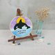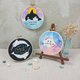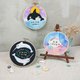 圆框直径约13cm,以布绘颜料绘制,加上纯手工刺绣图与字样。