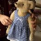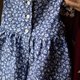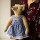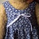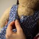 对于这件可爱的衣服,我选择了带有花卉图案的蓝色轻质柔软棉布。面料复古且高品质,因此可以长时间保持原来的外观。我搭配了一条白色缎带。穿这件衣服的熊看起来像一位女士。衣服可以用 3 个小纽带轻松固定。