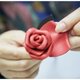 课程中制造一支红色皮革玫瑰,教授皮革花径制作,利用已塑形的皮革玫瑰花瓣,随着个人对层次感喜好,贴砌成一支优雅又永恒盛放的皮革玫瑰花。