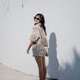 Oversized 衬衫,特殊图案单品之一,灵感源自水面图案,转化成大理石纹路,为所有女孩迎接夏天。